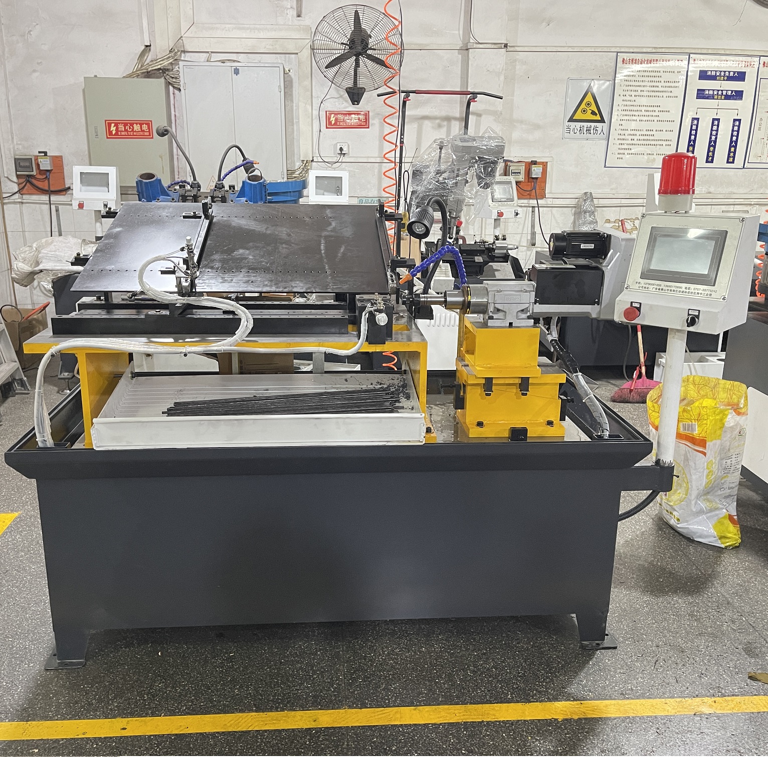1. PLC control, full Chinese color touch screen to realize man-machine dialogue, equipped with blind hole detection, tap detection, no material detection, counting energy tapping, torsion protection, which can tap left teeth, right teeth and drill holes. The parameter setting is convenient and quick, and the operation is fool-like. If there is a fault, it will automatically give an alarm and stop with a Chinese prompt. 2. This equipment is designed according to your company's products, with good stability, low investment, high efficiency, high precision of processed products, large quantity and short cost recovery period. 4. All actions are controlled by software, and the equipment parameters are set flexibly, which is convenient for function adjustment and technical upgrade and never lags behind. 5. This equipment is not easy to damage the tap. The faulty equipment will automatically give an alarm and stop, and prompt the error report in Chinese or English, so that there will be no rotten teeth and bad teeth, which will limit the generation of defective products, and the fault self-diagnosis function will make the fault display clear at a glance. 6. The transmission system is precise and concise, the work is more stable, the maintenance is more convenient, the failure rate is extremely low, and the equipment power consumption is low. 7. The fixture is convenient to change, and it can be used for many similar products to share this equipment. 8. The whole equipment is fully automated, and one person can operate multiple devices at the same time. |